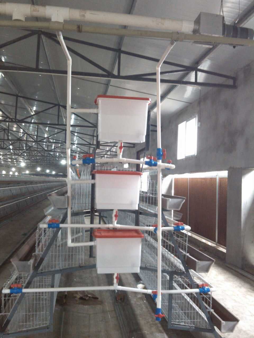 單棟1-2萬只規(guī)模雞場標準化建設模式,已成為當前我國蛋雞生產的主體。養(yǎng)殖場選址與布局應符合 《動物防疫條件審查辦法》的規(guī)定,同時要求交通便利,有硬化路面的專用道直通到場;地勢高,避風向陽,排水便利;水源穩(wěn)定,水質符合國家飲用水標準。布局應從便于防疫和組織生產考慮,場區(qū)可分為生產區(qū)、辦公區(qū)、生活區(qū)、輔助生產區(qū)、污糞處理區(qū)等區(qū)域,同時按主導風向,地勢高低及水流方向為原則進行布局。如地勢與風向不一致時,則以主導風向為主;雞舍朝向采用東西走向或南偏東 (或西)15度左右,利于提高冬季舍溫和避免夏季太陽輻射,利于改善雞舍通風;雞舍間距,育雛育成舍10-20米,蛋雞舍10-15米。